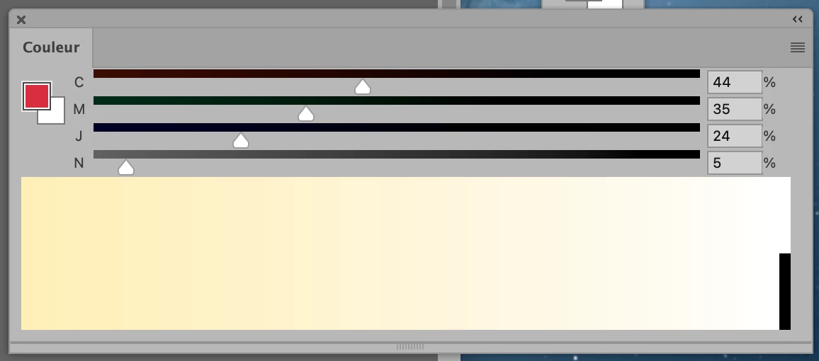 Après mise à jour de photoshop (version 25.1.0) le curseur des couleurs courantes sous le spectre CMJN ne correspond plus à la couleur sélectionnée.