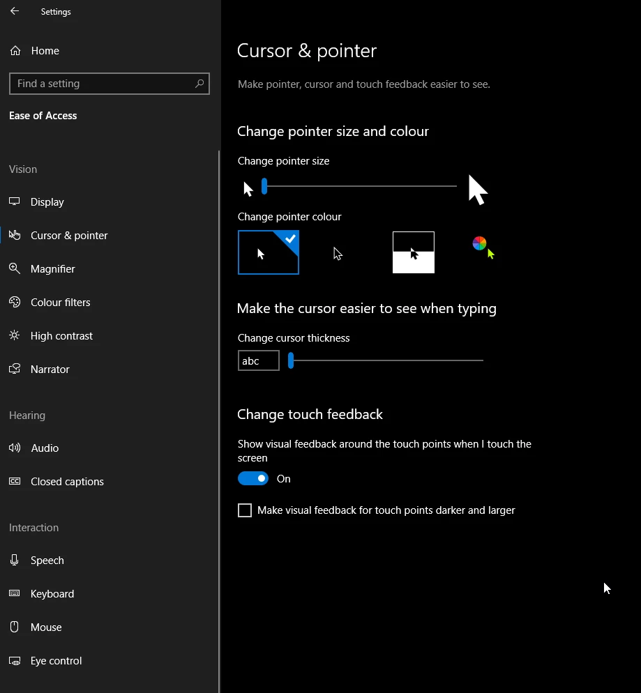 Cursor size on Windows 10