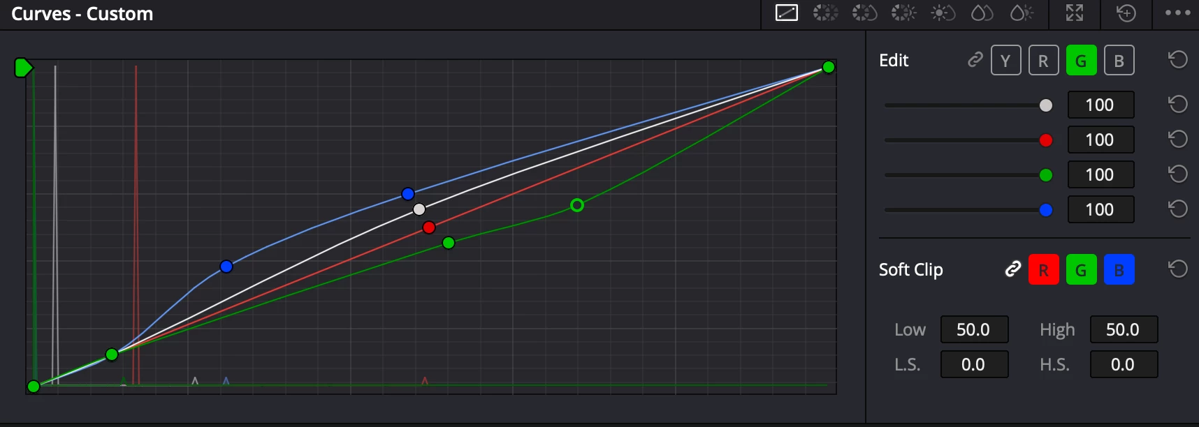 Also being able to view the each of the channels layered over each other whilst making adjustments to only one channel at a time. The Davinci resolve curves panel is much nicer to use.