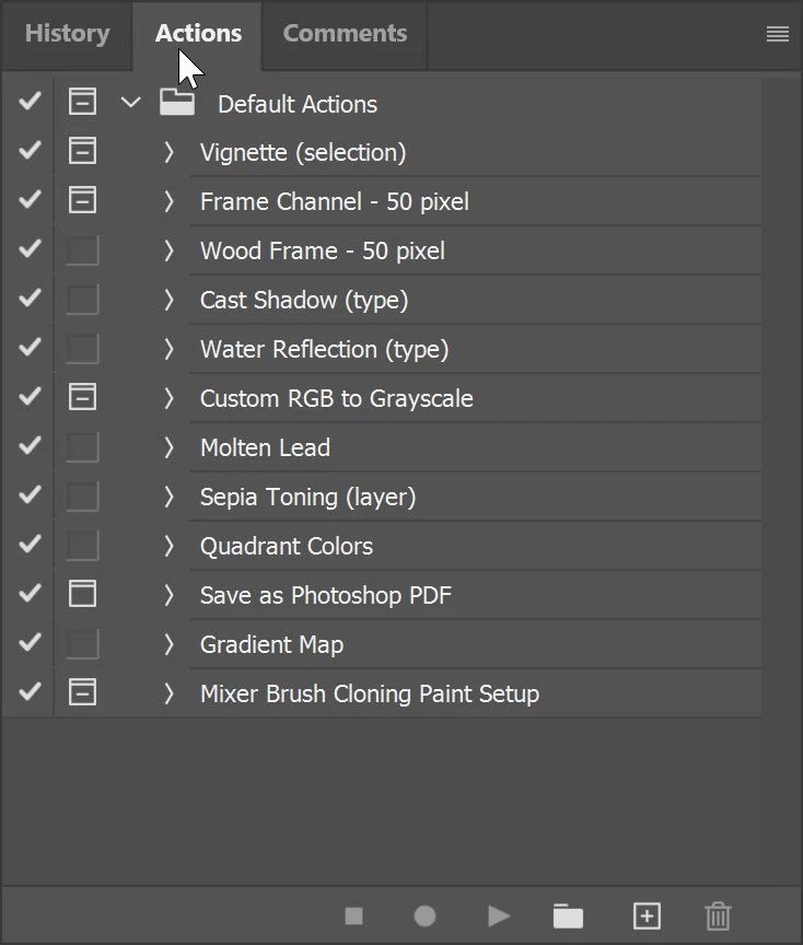 I was working on an image in Photoshop and wanted to apply an action I created. I went to my Actions tab and none of my custom actions are being displayed.