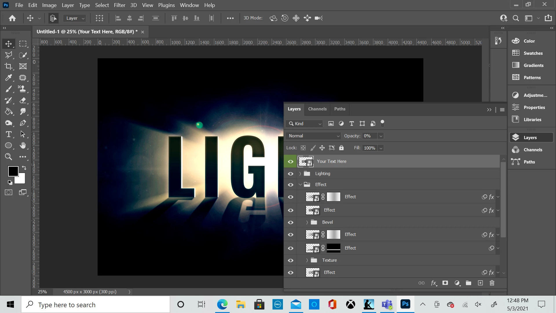 • Double-click the icon on the layer that says "Your Text Here" (green label) to open the SO