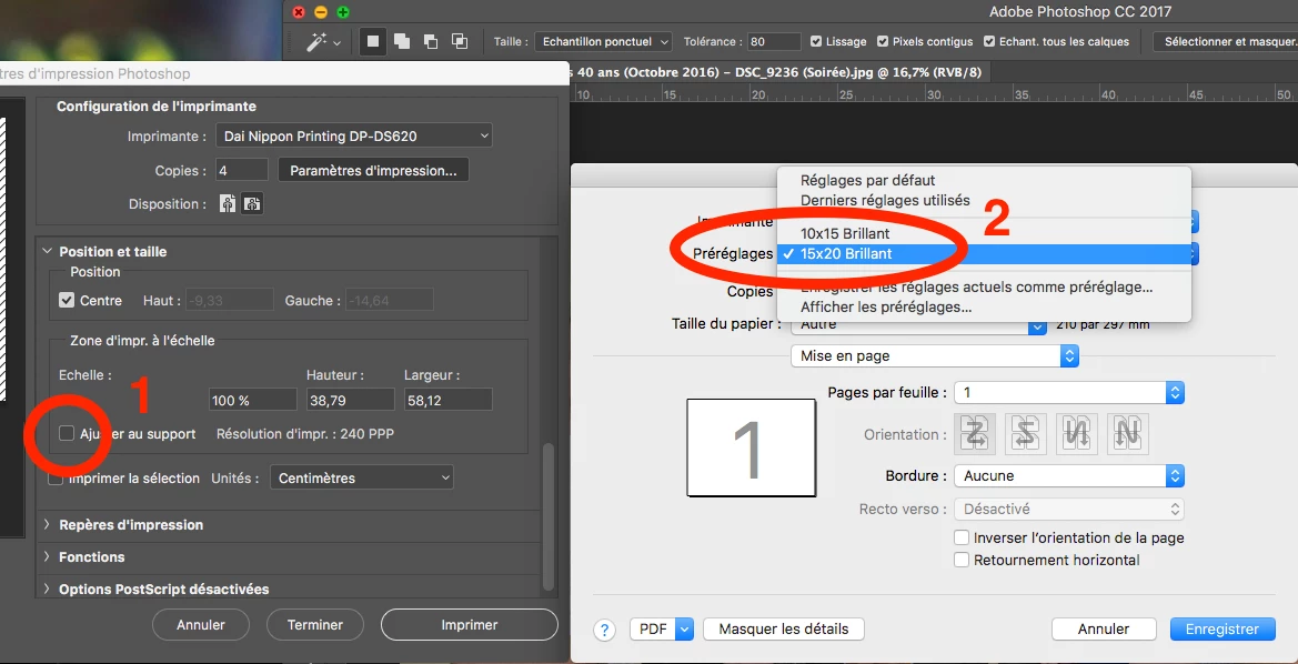 // - 2 Select the printer preset with the good paper size (defined from printers configuration before)