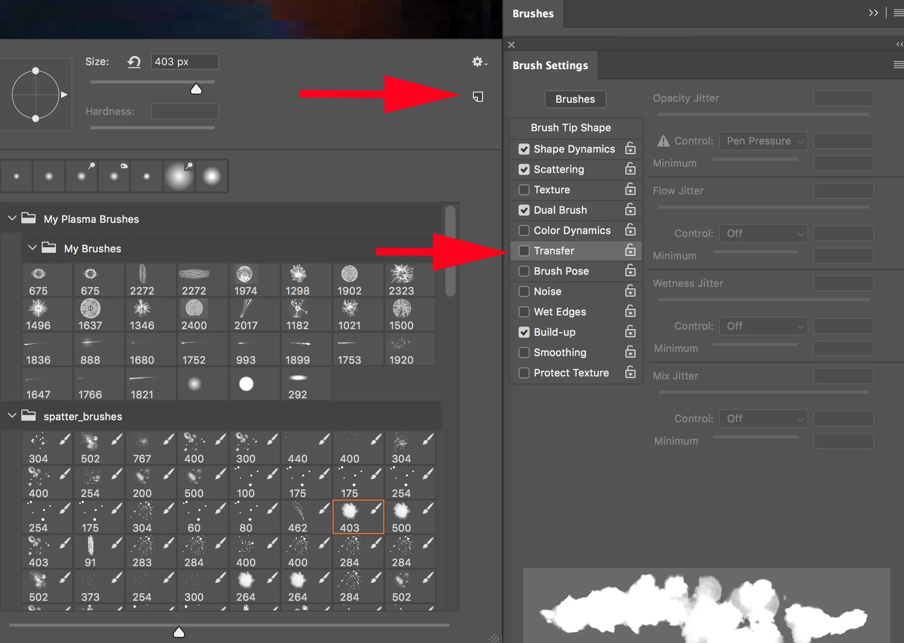 Uso photoshop con la tableta digital, y en F5, el panel de pinceles me aparece activada la opción transferencia y la desactivo, pero cuando uso el pincel se me activa automáticamente transferencia, y no quiero usar el pincel así, desactivo nuevamente, y nuevamente se me activa automáticamente, no he podido con eso!