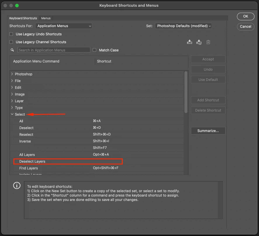 In Photoshop, when I click on an element in my creation, it selects that element's layer. Previously, simply pressing "Enter" on the keyboard deselected that layer, but I can't find that setting.