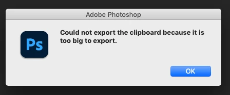 I'm running PS 2021 and Lightroom Classic, latest updates, on a Mac with OS 10.14.6. My normal workflow from within LR involves using Edit In > Photoshop for some images. I do my PS work and save the file back to LR. Everything works as expected except I get the dialog box (shown in attachment) saying PS could not export the clipboard because it is too big. AFAIK, I'm not trying to export the clipboard nor do I want to. What is the message for and how can I get it to stop appearing?
