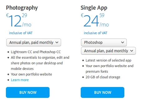 Difference between these two offerings? [Photography Plan vs Photoshop Single App]