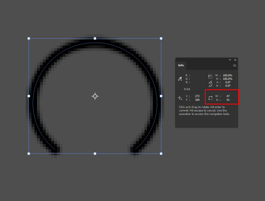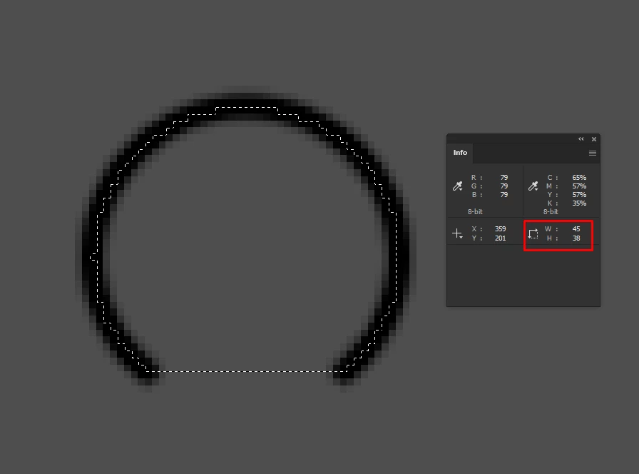 And when I select my shape, and control click the layer, its 45 / 38, one pixel larger in width.