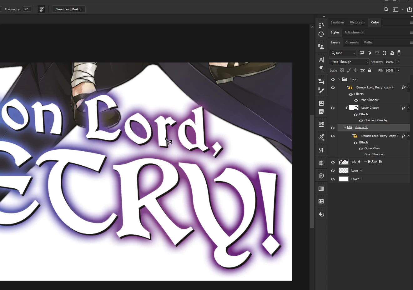 I'm working on covers for some graphic novels, and to add some spice to the logo I'm including a glow with directional gradient on it, which looks like this in action.