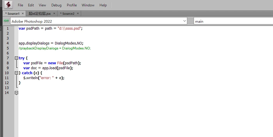 When using a script to open a psd file, an error message pops up, asking whether to continue. How can I disable this dialog box or automatically confirm to avoid blocking the program?