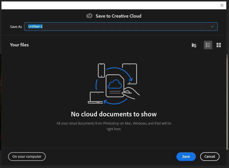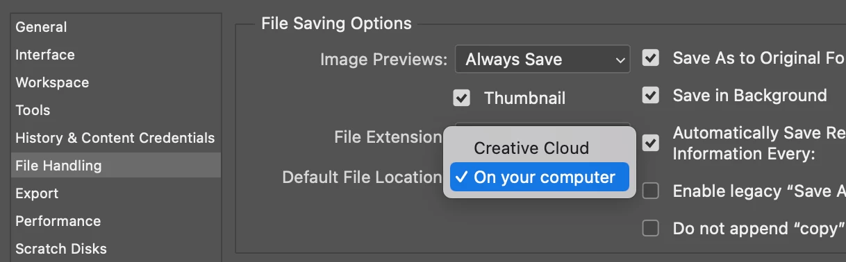 Disable Save to Creative Cloud dialog box
