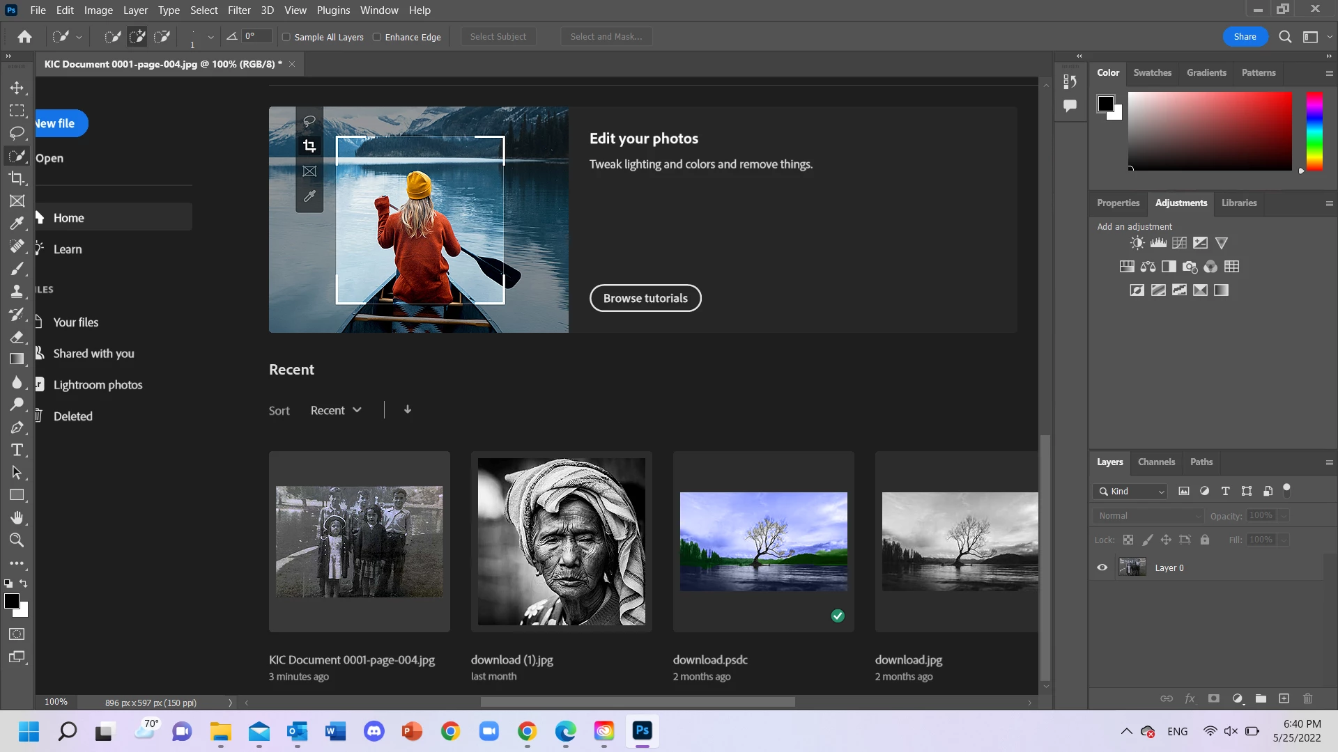 The Preferences can be found in the Photoshop menu on a Mac and the Edit menu on Windows. Within the General section is the option "Auto show the Home Screen". Does turning this off help?