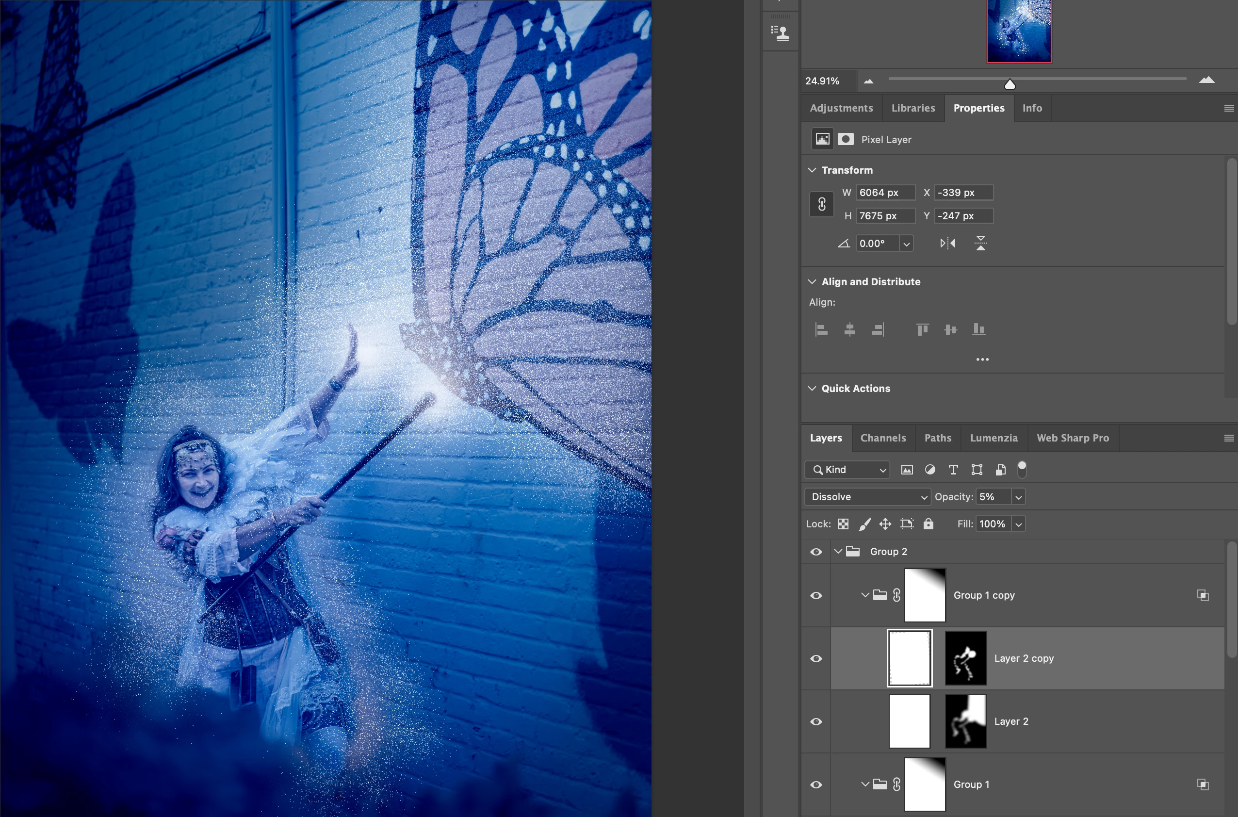 I am using a "dissolve" layer set at say 10% opacity. When I create a visible stamp layer the dissolve layer effects are no longer visible. I am using the recent Photoshop Beta version 27.0.1. I tried using the file in a the most recent photoshop version and the same happens. What do I need to do have the effects saved to the file and visible???