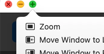 Since the update, the green dot button only contains opposing arrows with the options to enter full screen mode, or tile the window to either the left or right of screen.