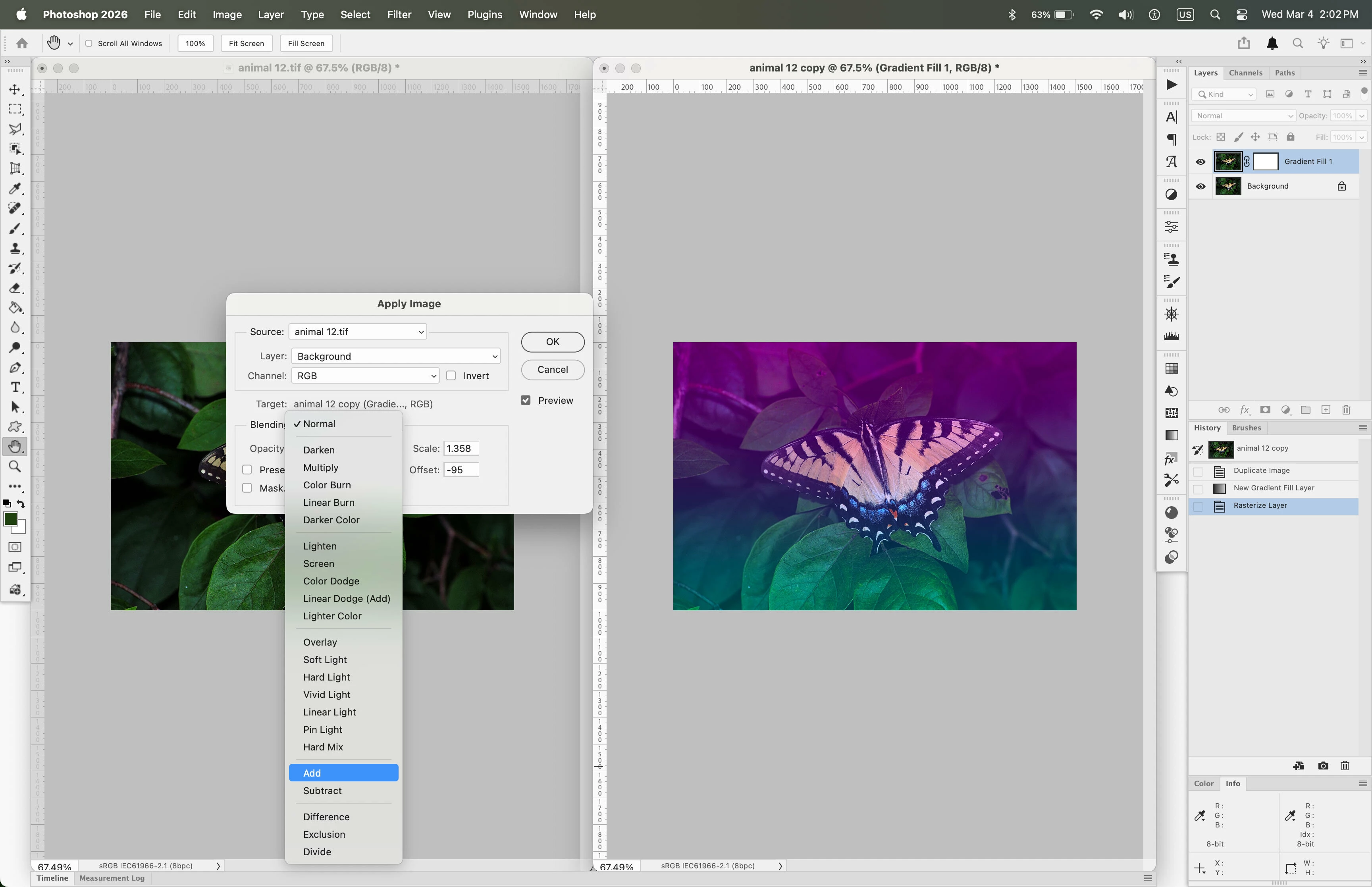 Does anyone has an idea why the blend mode add was removed from the apply image menu in v27.4 ?