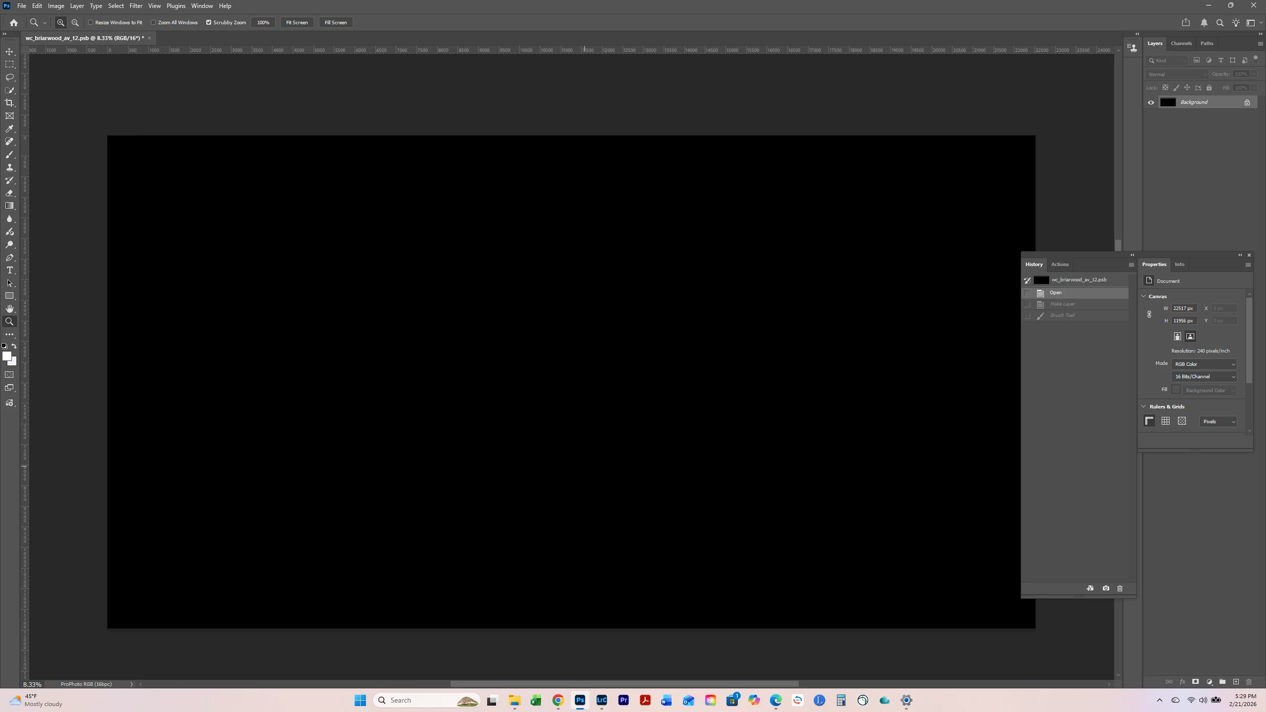I had just finished saving a large PSB file I had been working on when my screen went black. After turning the computer back on (it’s a new laptop, and I haven’t had previous issues with it) I opened my file. I had 3 files open at the time of the crash, and 2 of them opened as Recovered. The main file did not. Perhaps because I had just saved it? In any case, although it contained many layers, there was only one layer when I reopened it, and it was black. I’’ve attached a screenshot. I Googled if Photoshop saves temp or backup files somewhere, and saw that it can in the folder path listed below, but there were no PSB/PSD files there. Is there anywhere else Photoshop may have saved this file on my computer? Thank you.