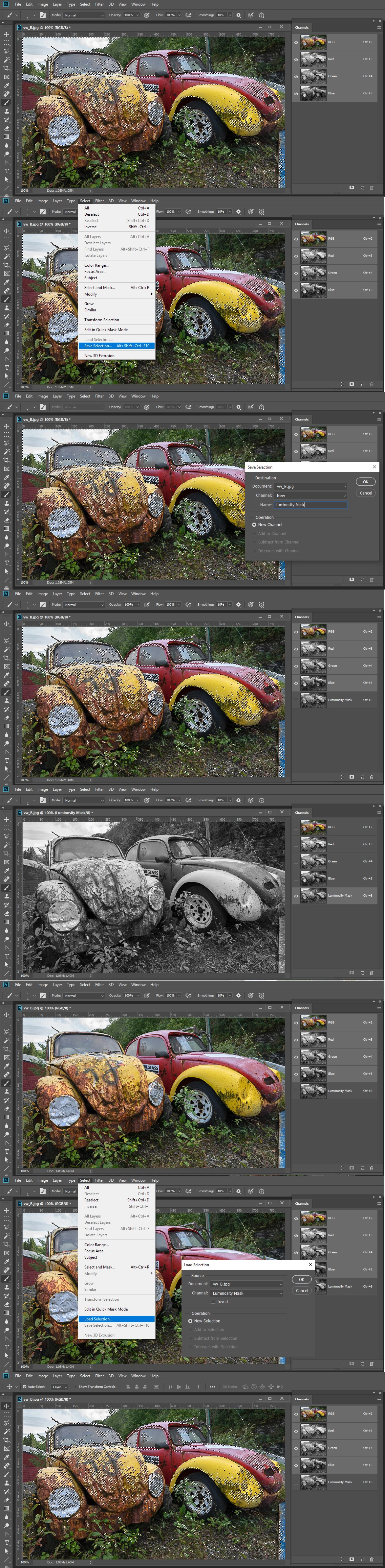 Also when I create the luminosity masks using calculations on the grey channel in multiply mode, I get different results after repeating a few times the operation...