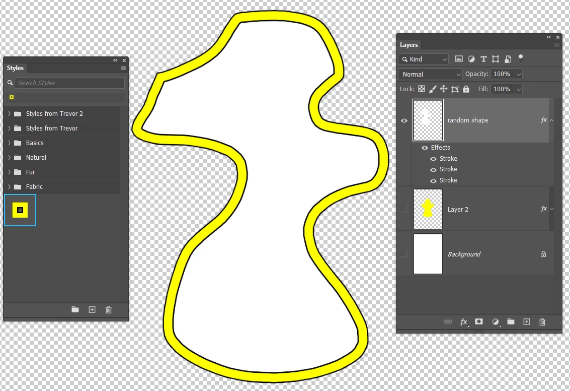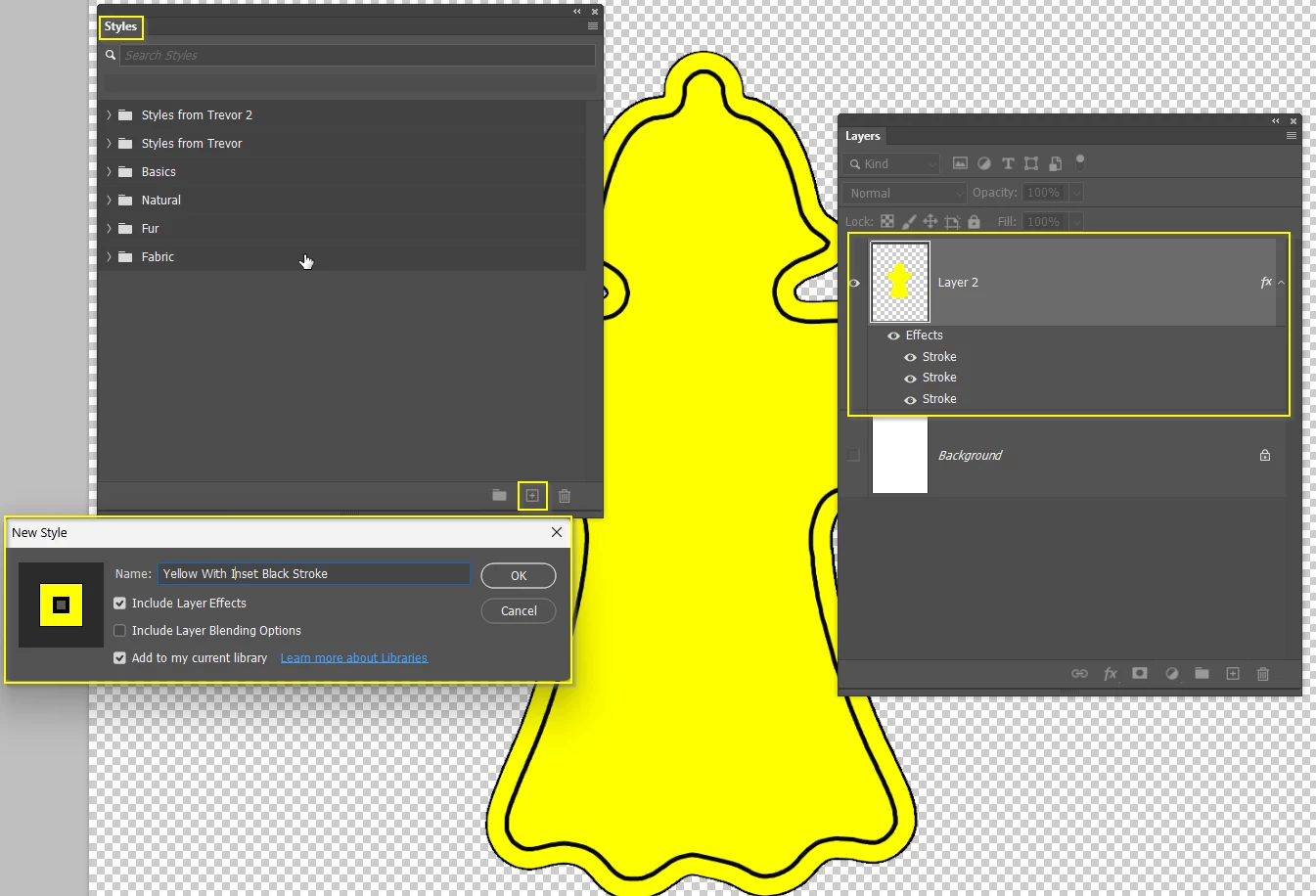 Note: If you wanted the interior of the shape to be the same colour as the offset, then add a yellow Colour Overlay to the saved Layer Style.