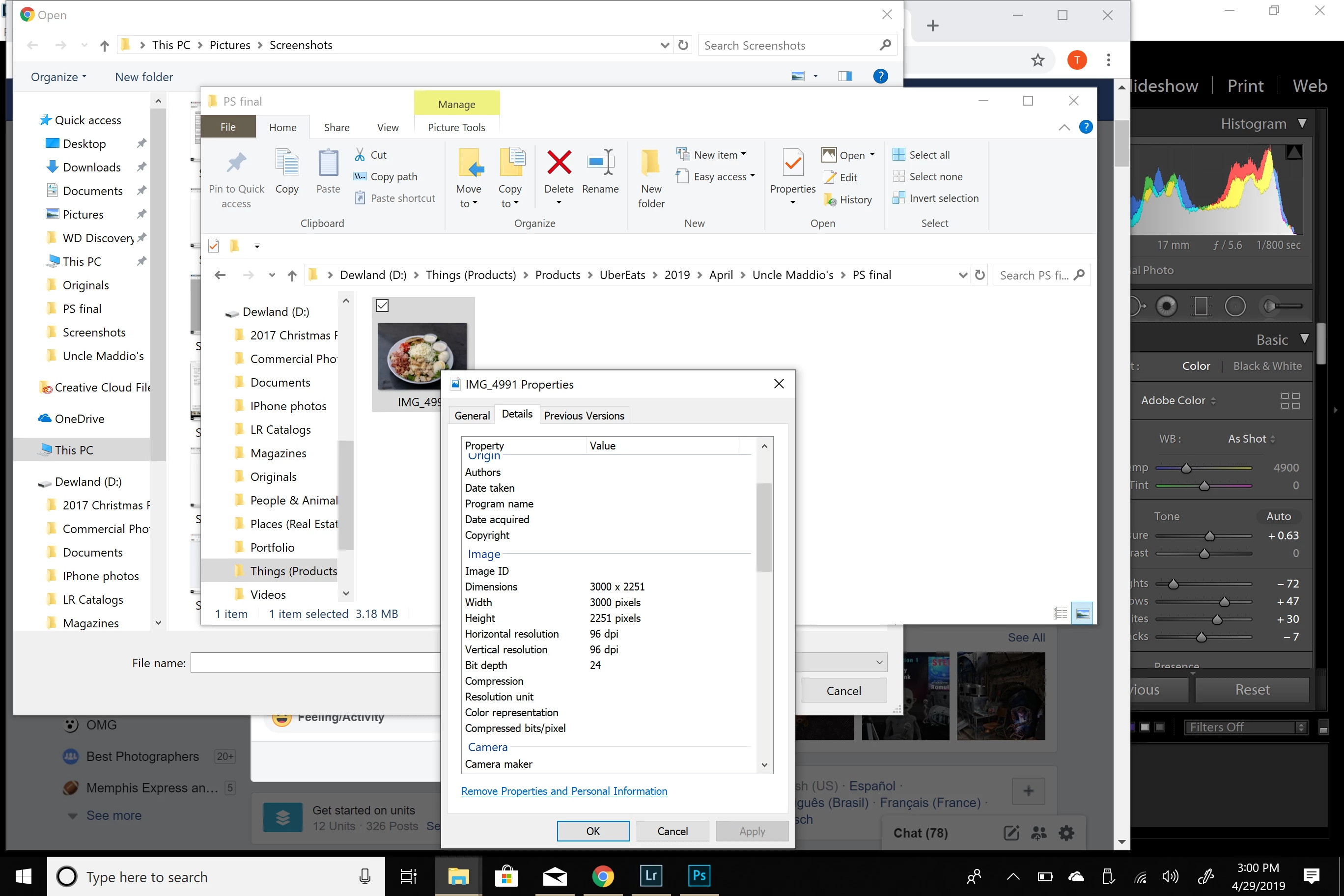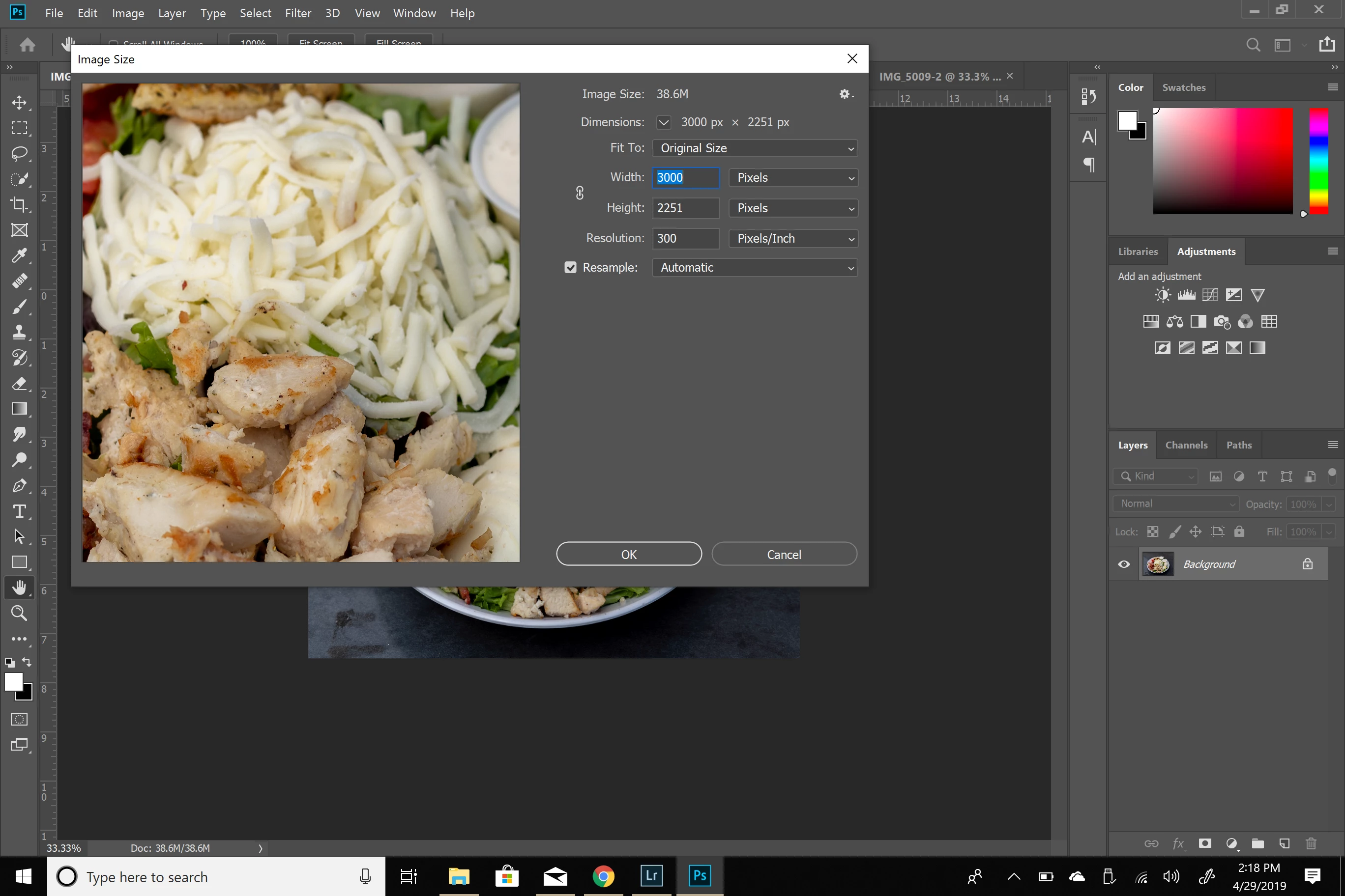 First, when trying to export it as such in Lightroom the exported image comes out as 3000 x 2250 at 300 dpi no matter what I do. I am aware lightroom is known for changing images by a pixel or so, so I brought the images into photoshop. I immediately did Image-> Image Size-> and adjust it accordingly to the settings I need. I then closed that out, and went to Export As-> then did JPEG with it at 100% quality.