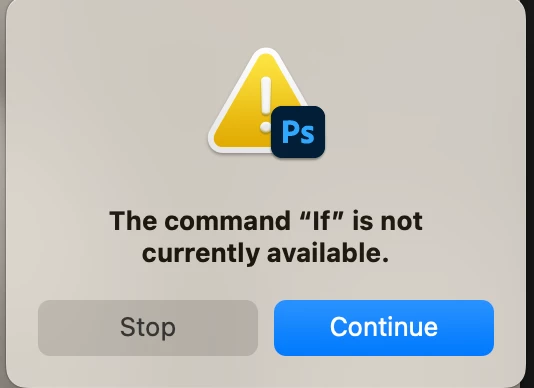 Within photoshop this works perfectly (then I have 2 images loaded). But when I make a droplet of action 1 and add two images, I get the erromessage saying the command "IF" is not available.