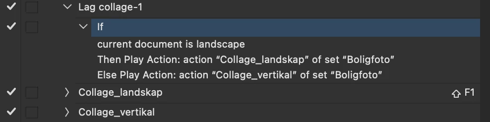 action 1 is a conditional action only saying: If document is landscape, then run action 2, else run action 3.