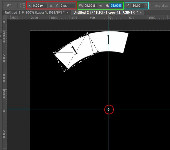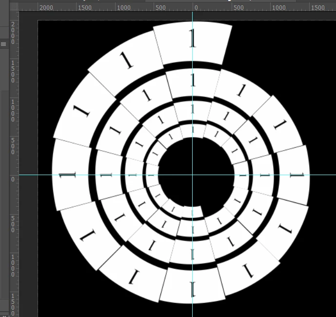 I then used Transform Scale on each layer transforming the horizontal and vertical differently . Each I aligned to the previous so that after four transforms my quarters made the first loop of a spiral
