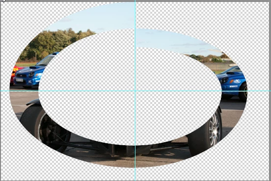I masked an image using an oval selection and divided into four each quarter on a separate layer and masked separately
