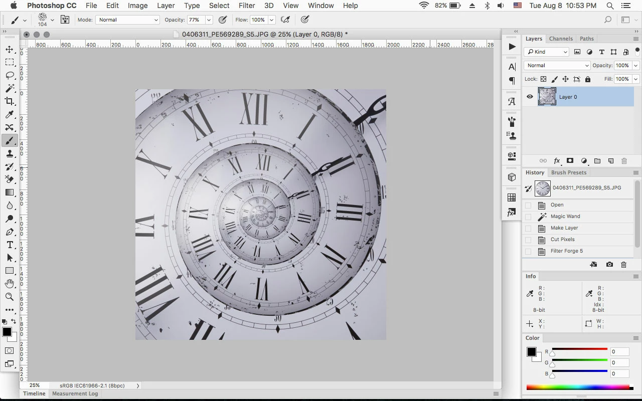 I'm hoping to create an infinite clock, found some useful tutorials on how to create that with the pixel bender and droste effect but the plug in is not available on Photoshop cc. Is there another option to create this?
