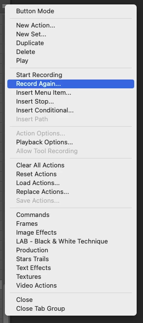 It's also available as an action panel menu item – Record again: