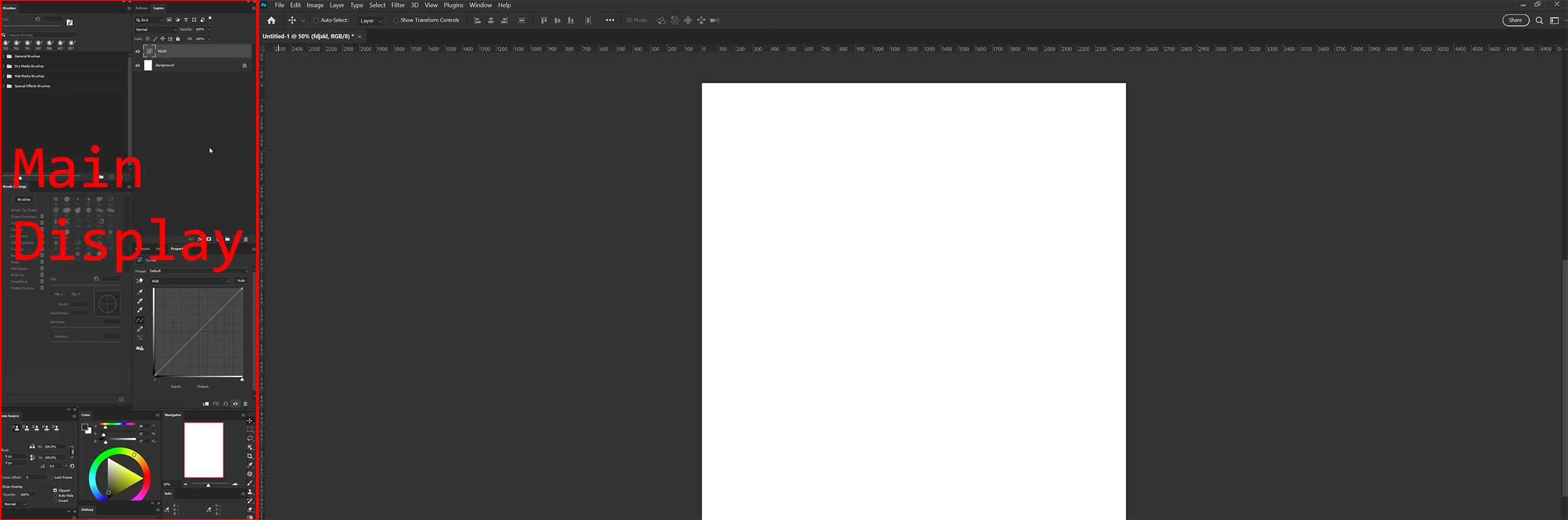 1. Move all panels to the 1080p screen (Main Display), leave the main Photoshop window on the 4K display