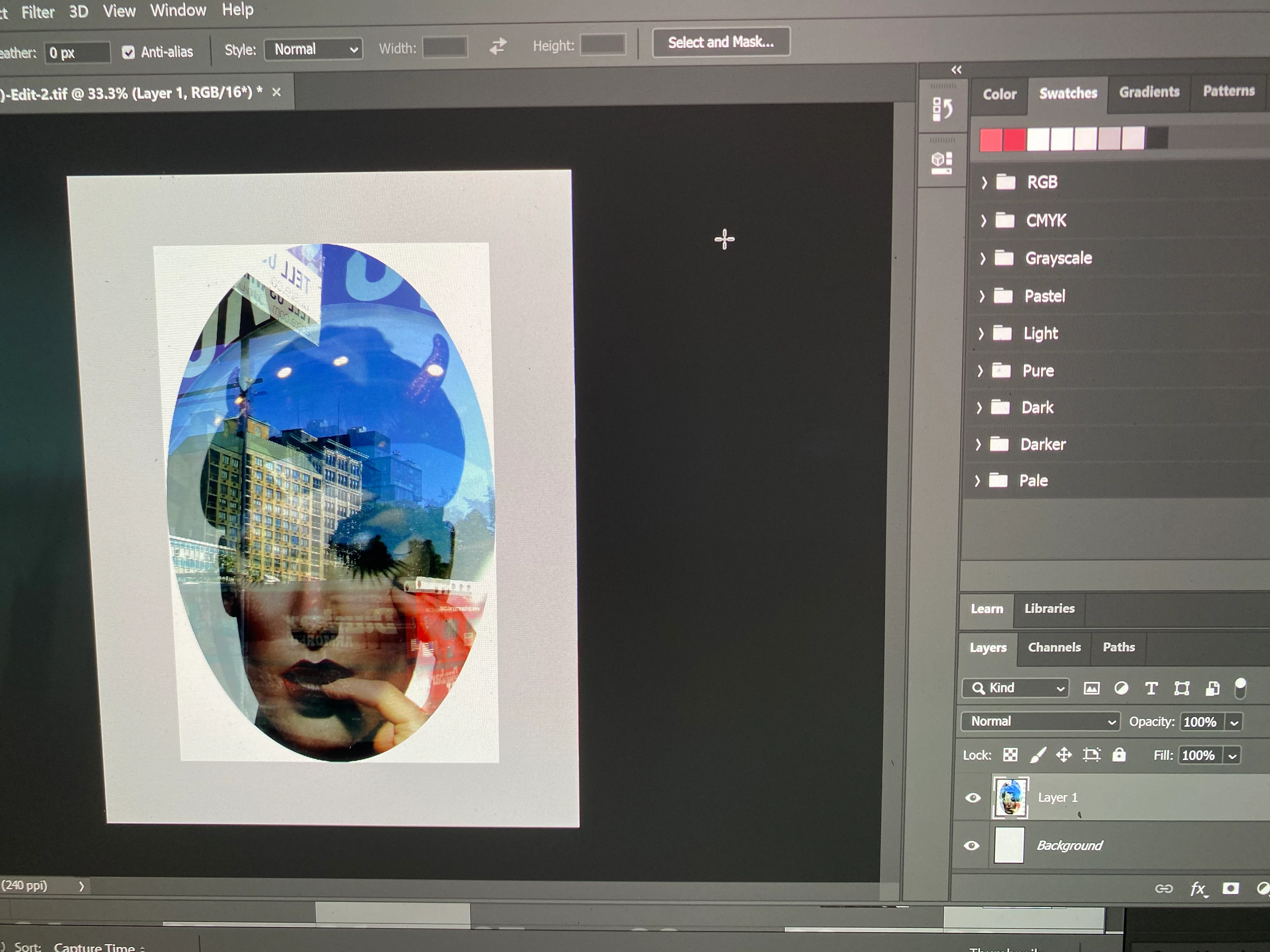 Elliptical marquee tool has a white, square box surrounding the selected area when copied and paste