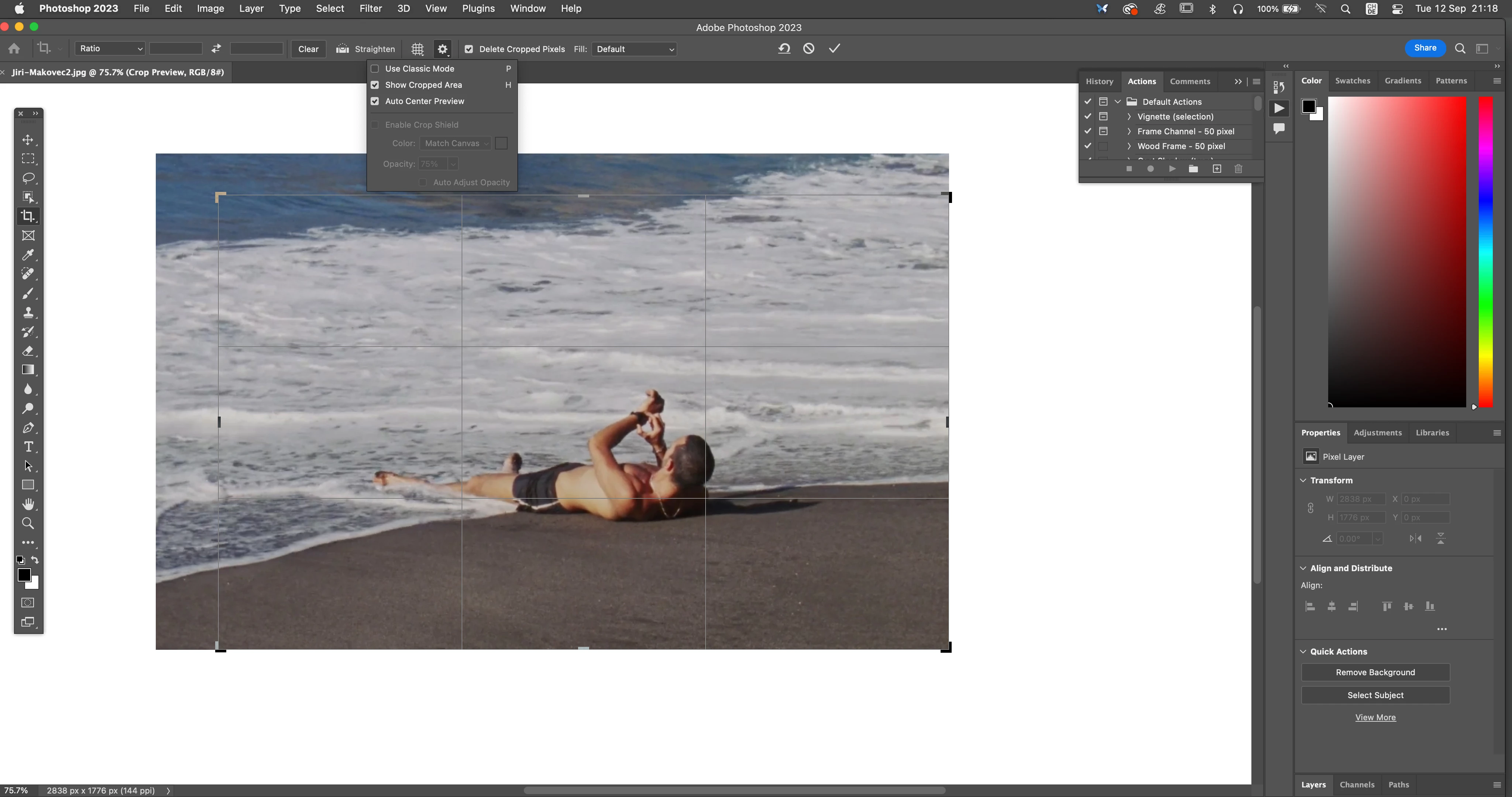 Enable Crop Shield option is greyed out in Photoshop.