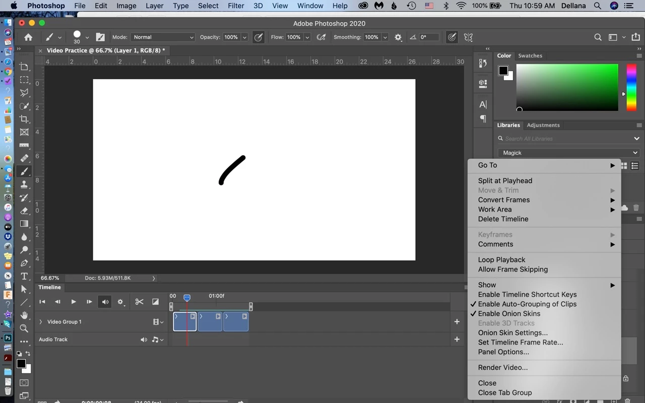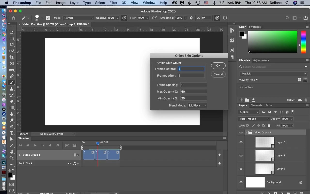 'Enable Onion Skins' not working in Photoshop CC 2020