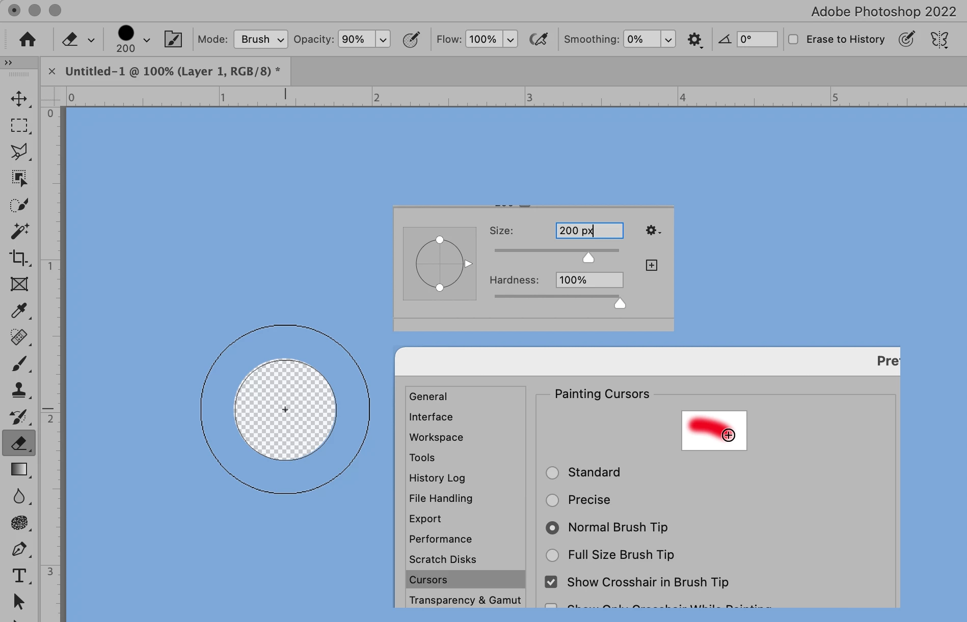 Eraser tool not erasing everything in selected cursor size??