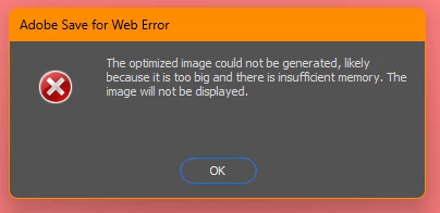 Erro ao salvar para web no Photoshop alegando falta de memoria mesmo tendo.