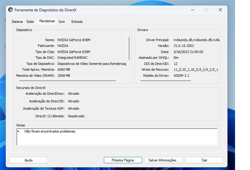 Erro de compatibilidade de processador grafico, mas meu DirectX esta na versão 12