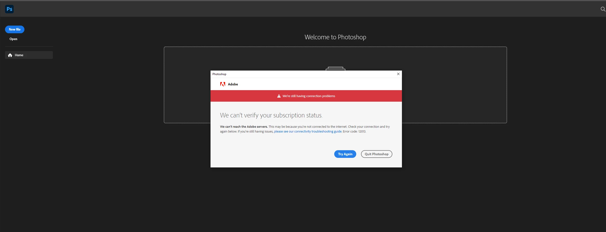 Fui até o Firewall do Windows Defender em "Regras de entrada" - "Adobe Unlicensed Pop Up" estava bloqueado, então o habilitei, saí do Creative Cloud e quando voltei, o Photoshop estava funcionando!