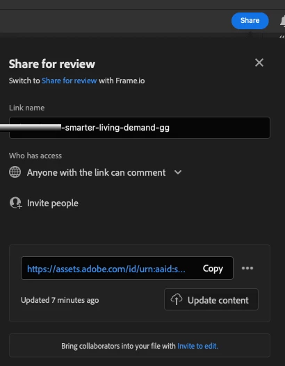 Since last week my Design team began having issues with links they send using the Share For Review function in Photoshop. Everyone who has selected these links get a Error 404 message. We have tried clearing browser cookie cache and history with no success. I've seen other posts in Adobe Community about Illustrator users experiencing the same problem the past several days with no fix.