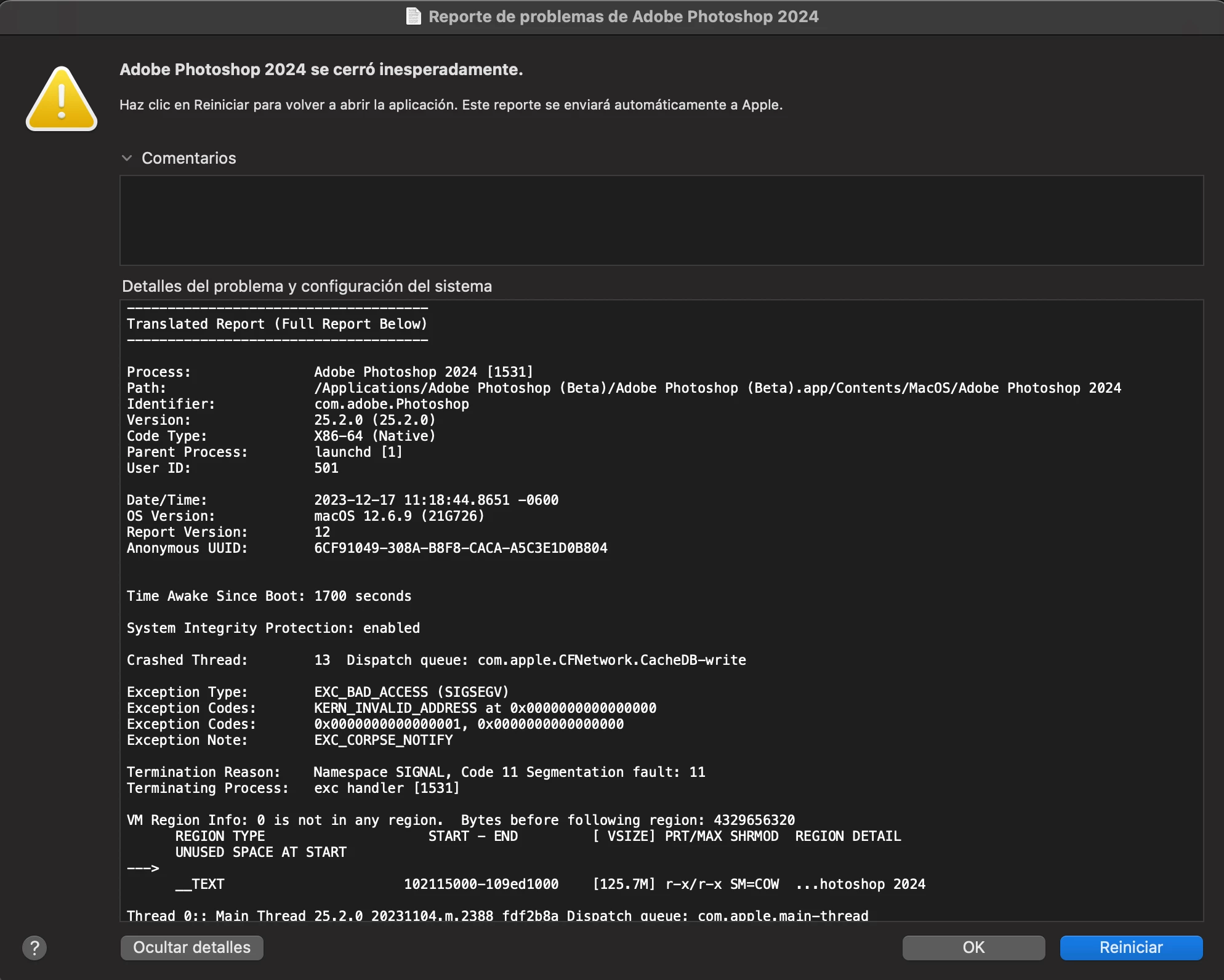 Error al iniciar Photoshop