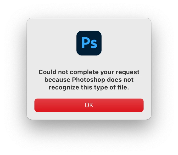 • Error "Could not complete your request because Photoshop does not recognize this type of file."