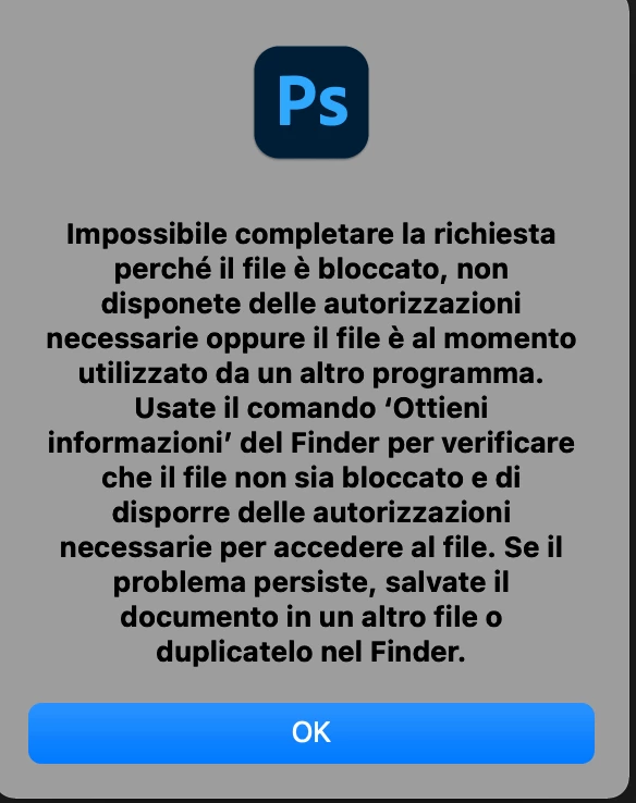Unable to save preferences because the file is locked, you do not have the necessary permissions, or the file is currently being used by another program. Use the Finder 'Get Info' command to verify that the file is not locked and that you have the necessary permissions to access the file. If the problem persists, save the document to another file or duplicate it in the Finder.