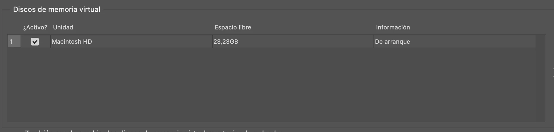 ¿Por qué no sale mi disco duro SSD para configurarlo como disco de memoria virtual? Tengo un MacBook Pro 2019 i7, el disco duro es un Sandisk Extreme, está en ExFat y Photoshop tiene Acceso total al disco. Tengo dos iguales y ninguno me aparece, uno de ellos recién formateado y no sale. No sé cuál puede ser el problema.