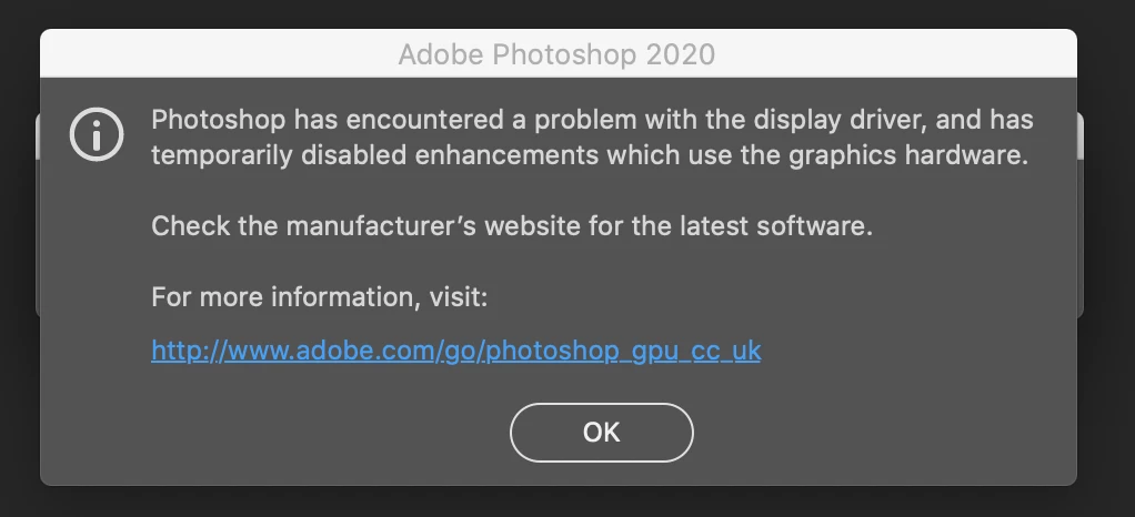 Can anyone help, please? After just doing the latest update to Adobe Photoshop 2020 I am getting two error messages: