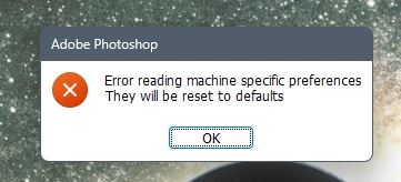 I am glad to see that it hasn't reverted the preferences to a factory reset - However, I would be interested in working out what specific aspect of the preferences could not be read.