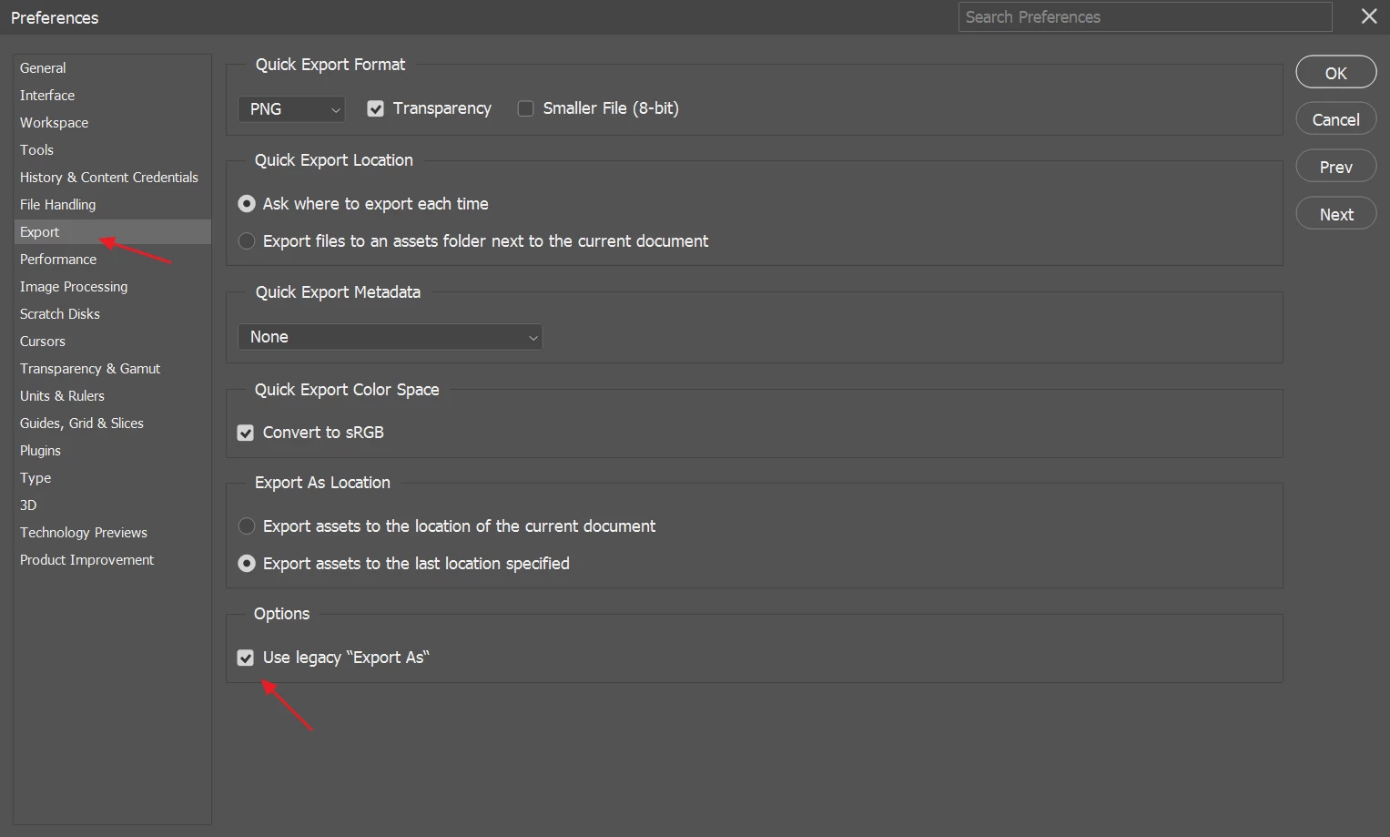 Preferences>Exports> and checking the USE LEGACY "EXPORT AS" option.