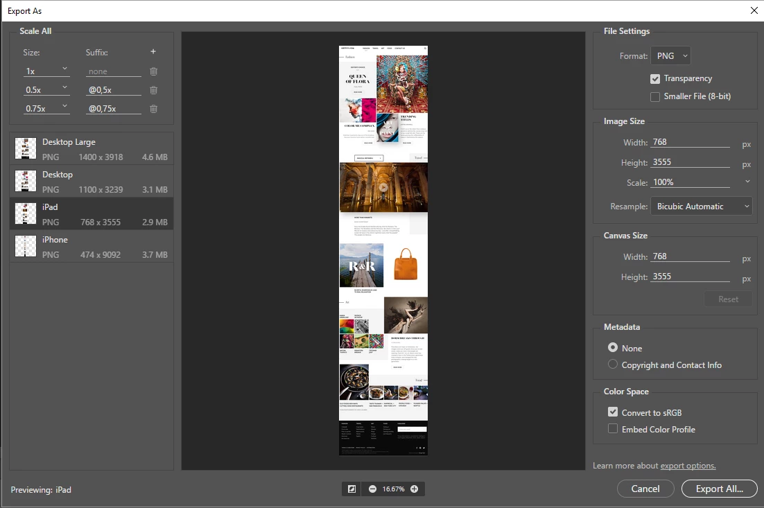 When I choose Export as either from the top menu or right click my layers are not included in the export. All it shows is a single image file. No matter how I select the layers in the layers palette no layers are included. Layer groups or not. Open layers or not. Locked layers or not. Linked layers or not. Export to PNG, JPG etc. It never works.