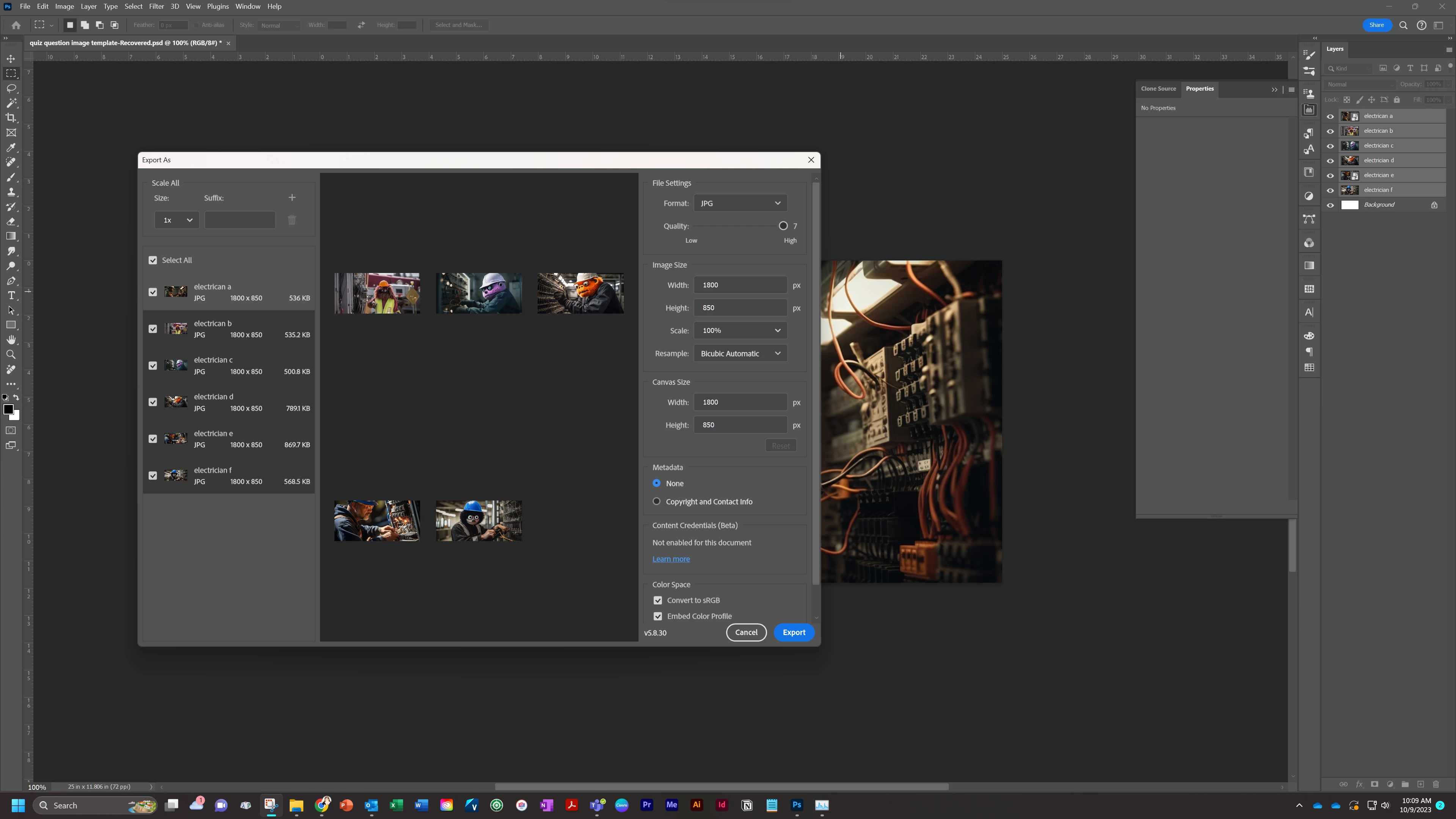 Export As on selected layers locks up computer when I change the JPG quality