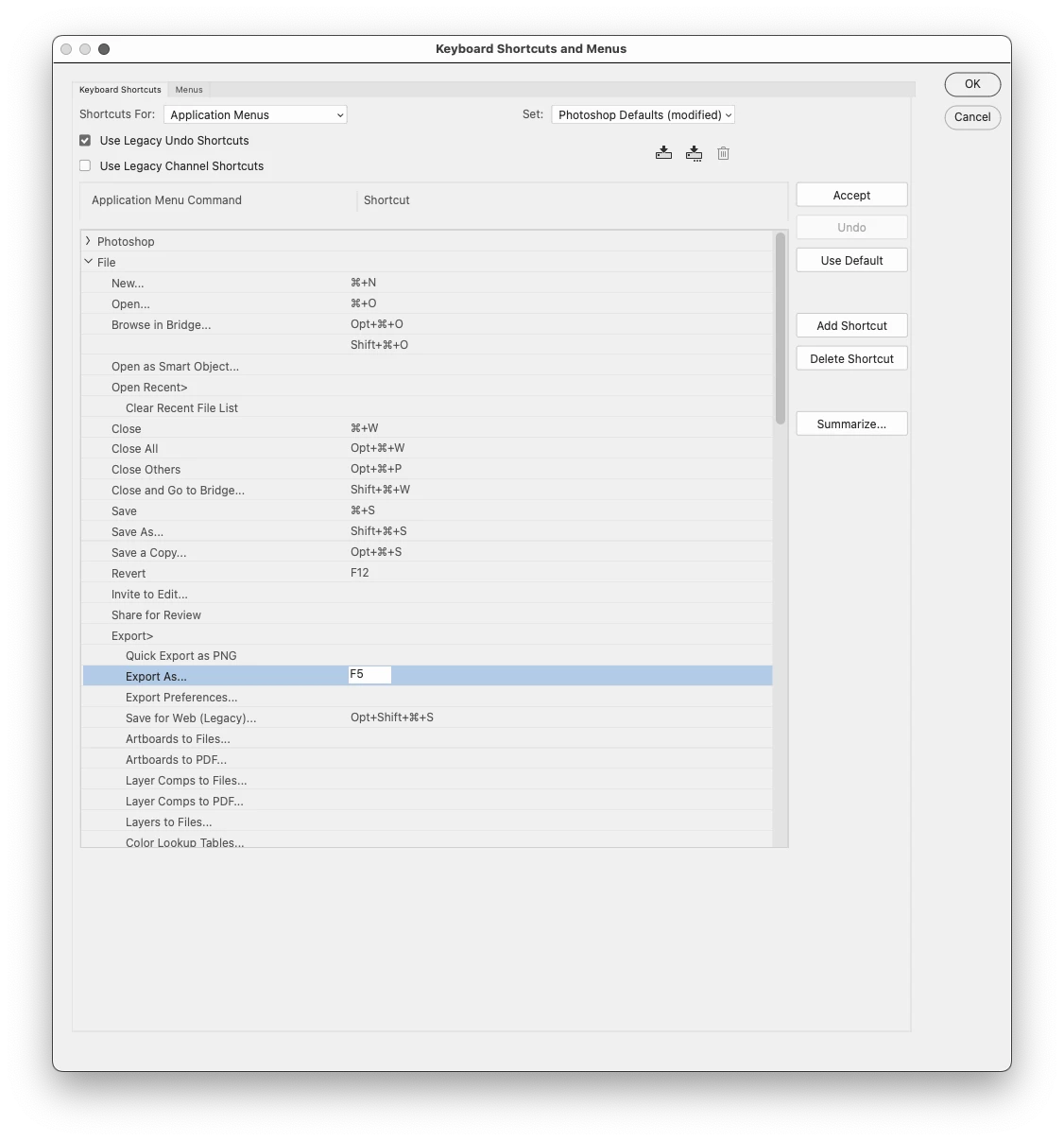 I've been looking for Action to get to Export As dialog box quickly by just a press of a button instead of its native shortcut. Found this script online but it doesnt work with the PS 24.7.1 on a Mac.