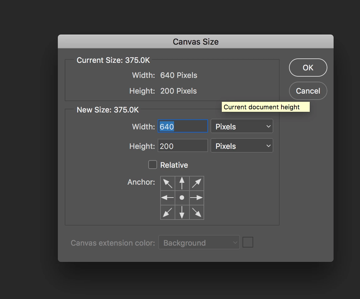 The canvas size is probably 640x180 not 640x200.