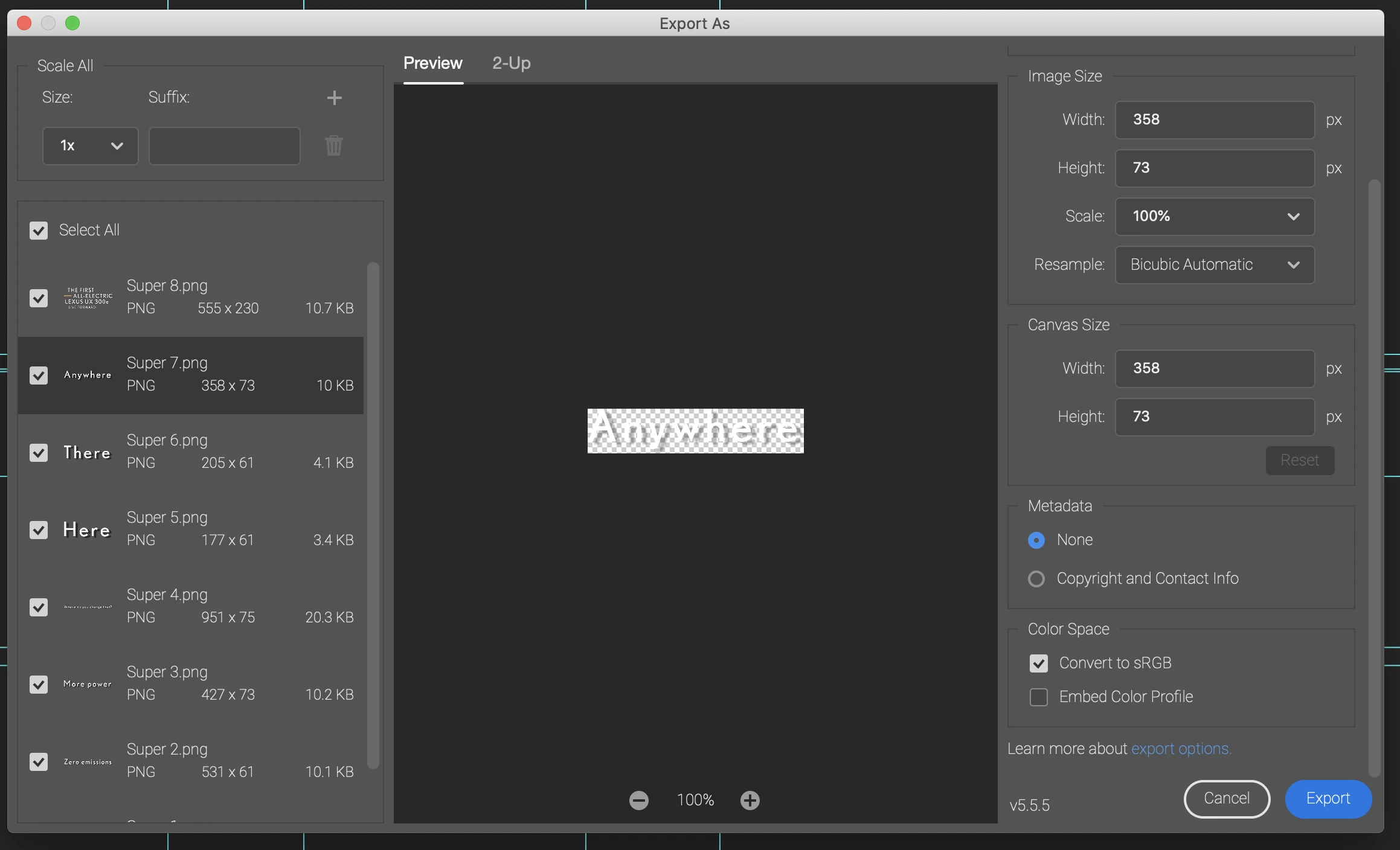 Export Layer Groups as PNGs and retain artboard size