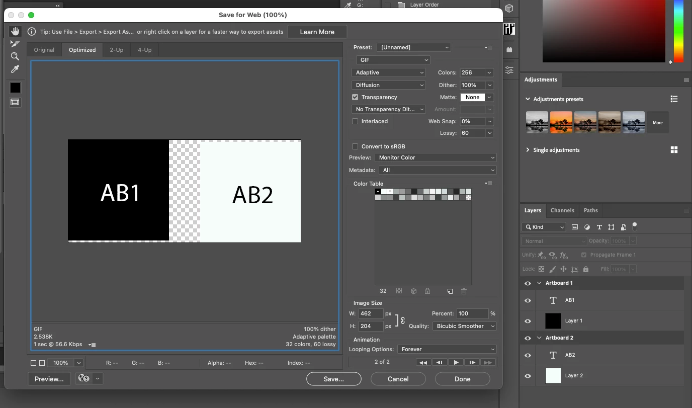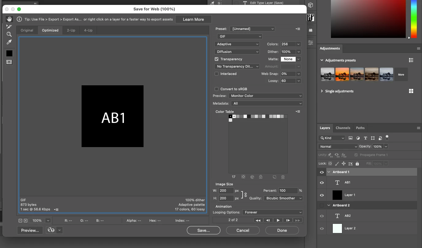 For now I needed to create animated banners, but while I export it (ctrl+shift+alt+s) I have no options to choose artboards to export and it gives me one output file. The examples I put below.